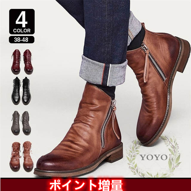 ブーツ メンズ エンジニアブーツ ショートブーツ ワーク 両側ファスナー 靴 シューズ ドレープ おしゃれ ブーツの通販はau Pay マーケット ヨーヨー商店